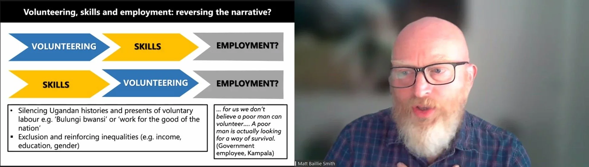 On 5 July, Prof Matt Baillie Smith gave a presentation about the RYVU project in the panel “Volunteering, Solidarity and Development”. The purpose of the panel was to move beyond a focus on how volunteering promotes development to explore what kind of development volunteering facilitates and for whom. Presentations reflected about diverse volunteering experiences in the global South, exploring volunteering’s relationship to efforts to build trust across different scales, struggles for peace and social justice, and responses to the climate emergency.