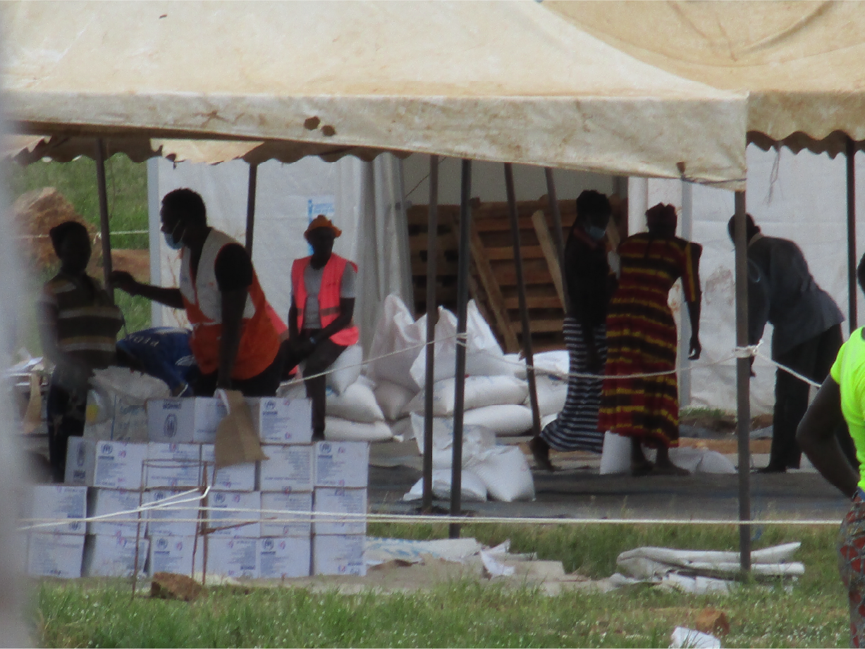 They are at the distribution point where the volunteers are there, and the staff are there. The volunteers are trying to pull those tents out; they're trying to help.