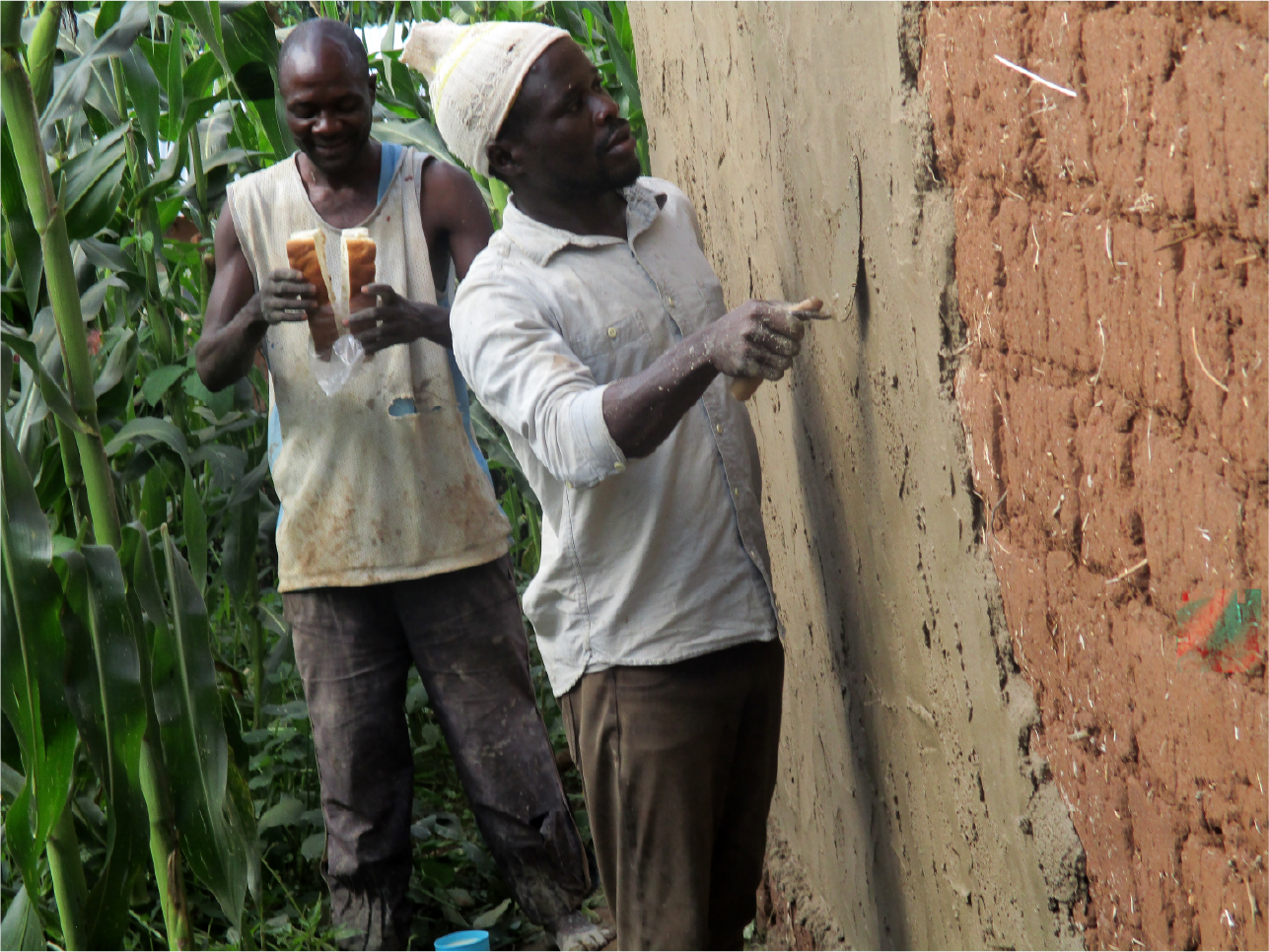 Volunteers building for a person with disability. The house had fallen due to the strong winds but these youth helped her repair it and she was very happy.